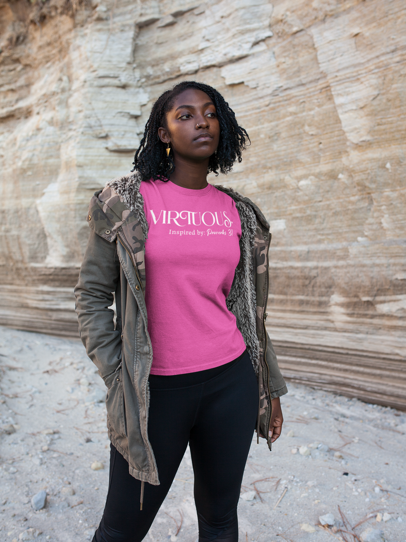 Introducing the “Virtuous” design – a beautiful and empowering tribute inspired by Proverbs 31:10-31. Penned by King Solomon, the wisest and wealthiest king to ever live, this passage celebrates the exceptional worth of a virtuous woman, declaring her value far above riches and wealth. This design embodies that powerful message, making a bold statement about the type of woman you are: strong in your femininity, confident in God, and a rare treasure in today’s world. Wear the “Virtuous” design proudly and let the world see your true worth.
